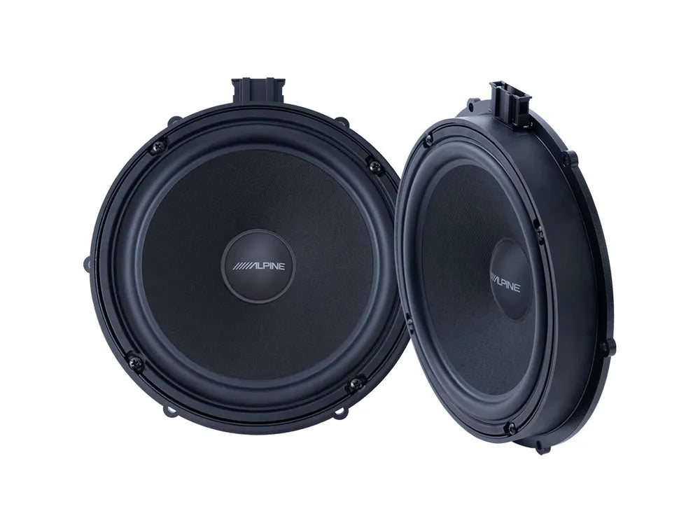The Alpine-designed 20 cm mid-range speakers produce a wide frequency range that uncovers the rich details of every audio track – delivering your favorite songs with powerful mid-bass and amazing texture and accuracy. The included steel base rings ensure a rock-solid, vibration-free connection to the door frame and perfectly seal the door interior from moisture due to the attached silicone seals.