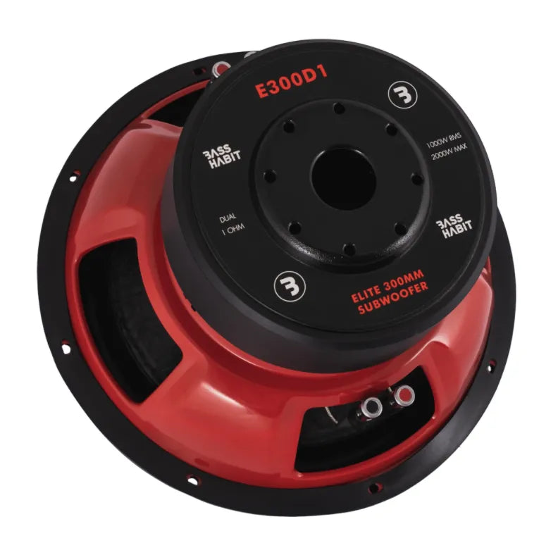 Bass Habit Elite E300D1 is a really cool bass element! The E300D1 is a base with a solid magnet and high power resistance that delivers really heavy bass, which works incredibly well in the closed as well as a ported box. Appearance is important and Bass Habit has given the E3000D1 a really rugged basket in its now classic red color. It is an incredibly versatile bass, which works well for every conceivable taste in music and delivers insane amounts of bass for a reasonable price.