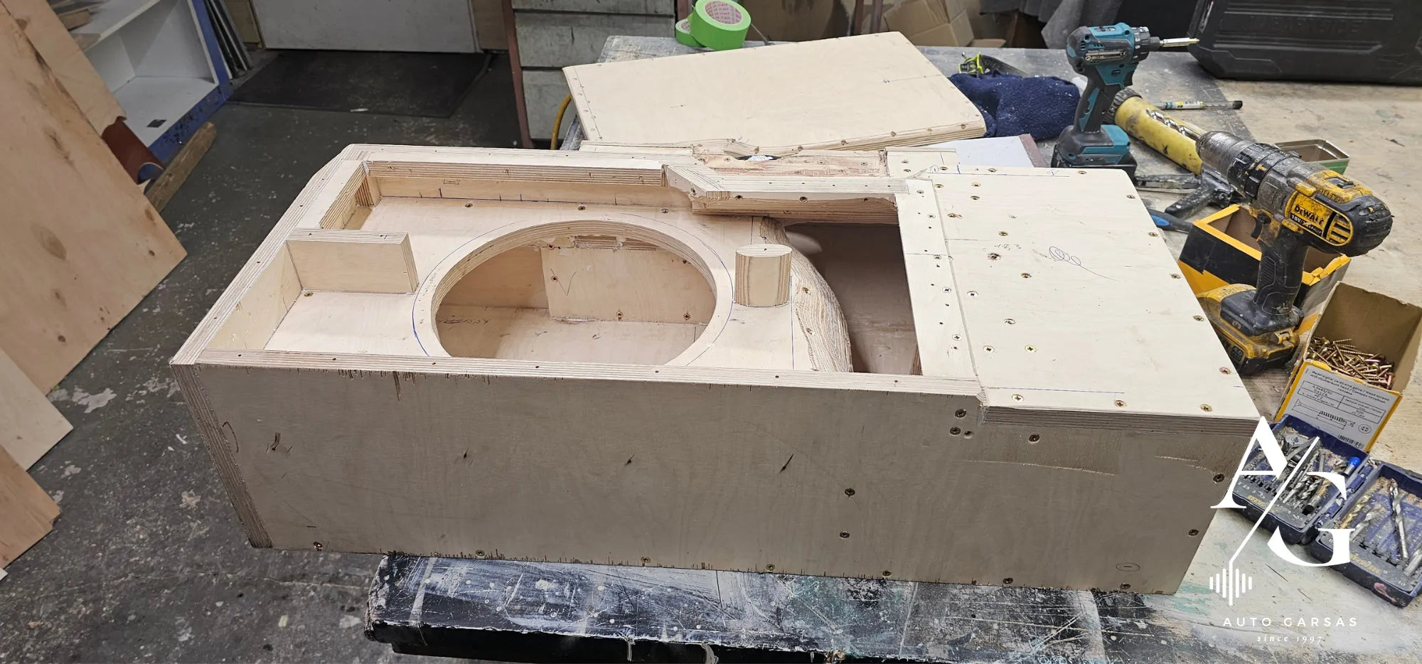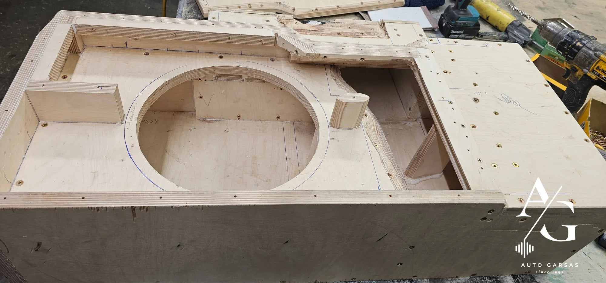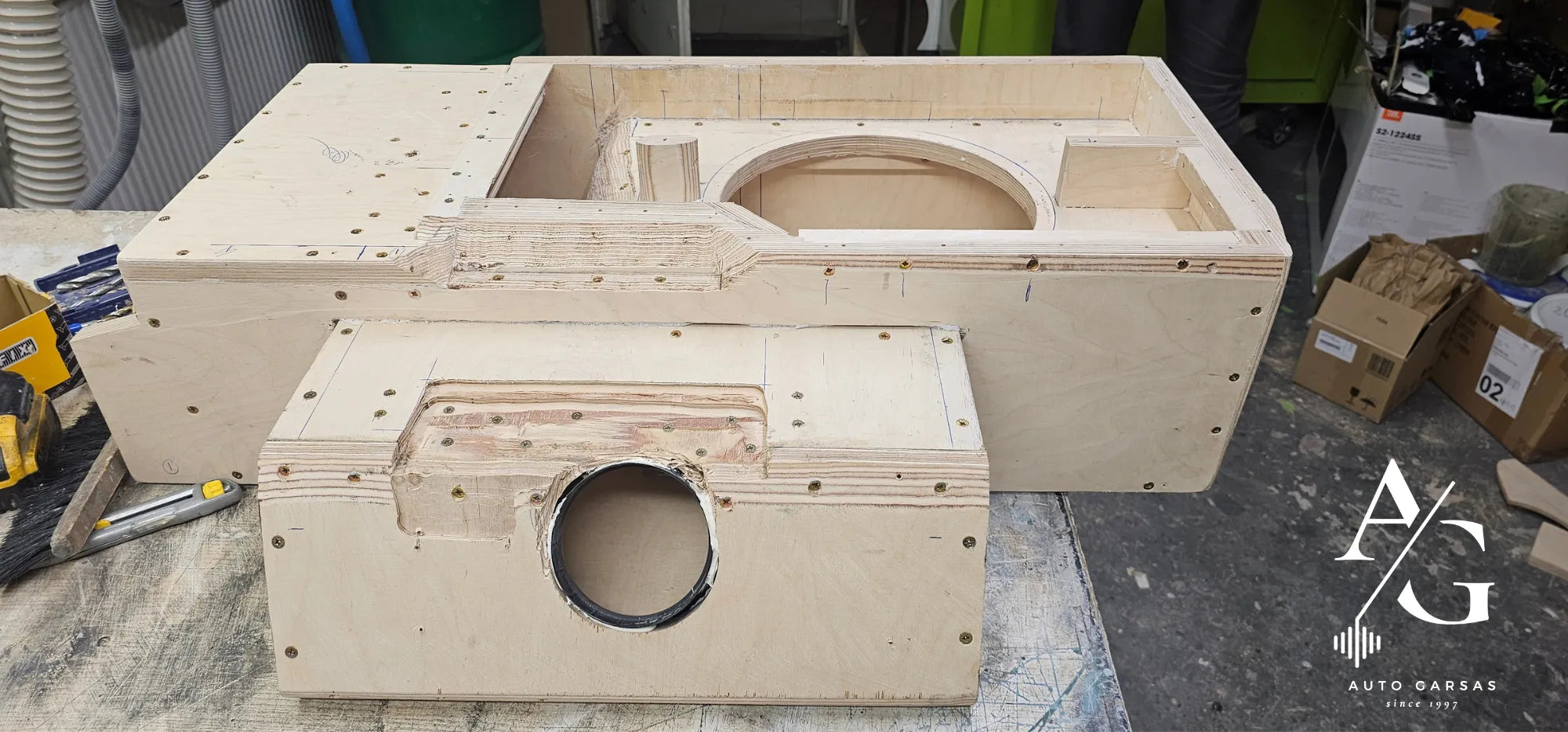 - Pagaminta Band Pass tipo subwooferio dėžė