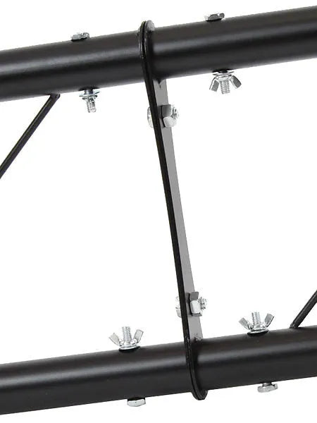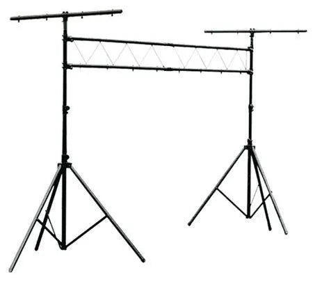 2 Black steel tri-pods + 2 added T-Bars on top to hang more lights + 3m central truss (2 x 1,50m)