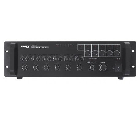 Powerful 100V amplifier with 5-zone, 350W mixer.