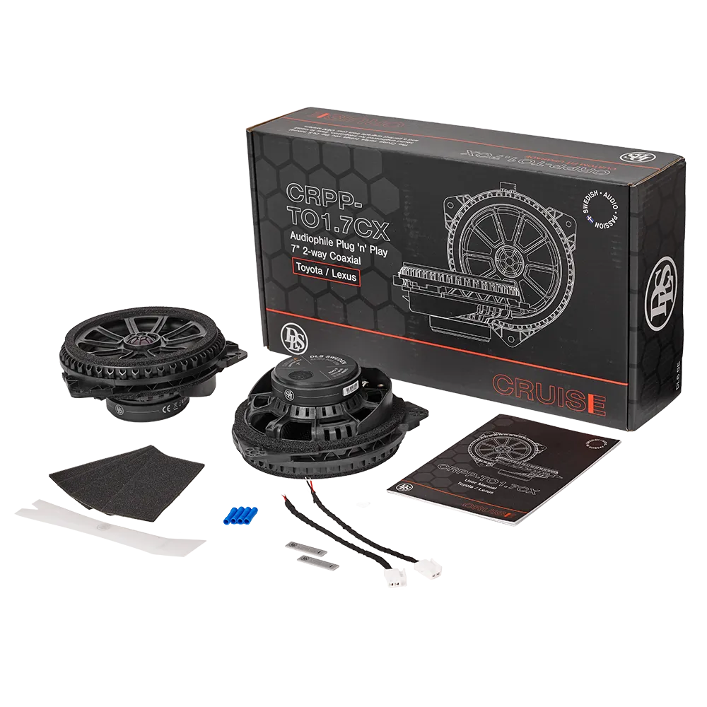 The Cruise Series CRPP-TO1.7CX is a custom-fit 7″ coaxial speaker set designed specifically for selected Toyota, Lexus, and Subaru vehicles. Including popular models like Toyota Corolla (2013-2023), RAV4 (2001-2023), Prius (2001-2022), Yaris (2005-2023), Lexus NX, and Subaru BRZ. It's intended for use in rear doors and pairs perfectly with the CRPP-TO1.7 component kit to deliver a balanced sound throughout the vehicle.