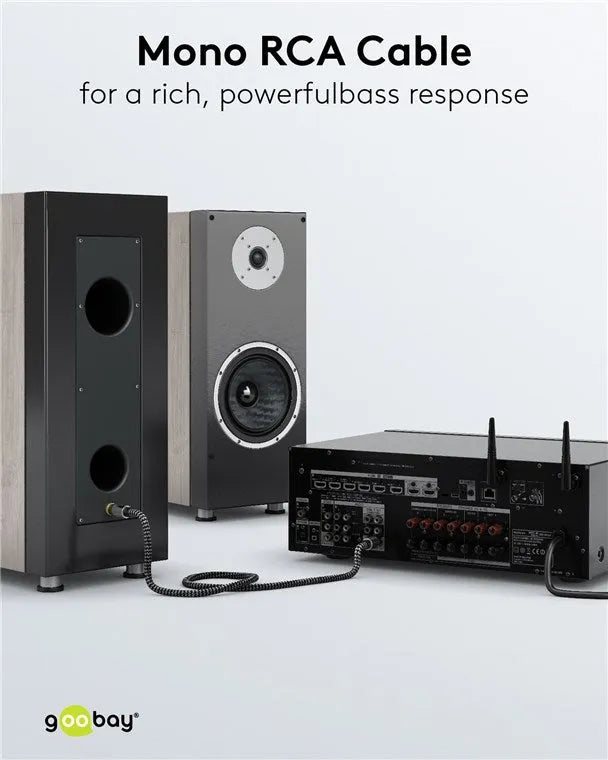 Mono RCA cable for connecting hi-fi equipment such as a subwoofer to receivers, amplifiers, TVs and home cinema systems with RCA connections