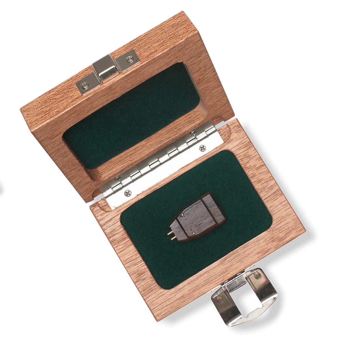 All of the internal magnetic circuit parts are Swiss screw machined or molded metal, which have tolerances on the order of the best Swiss-made watches. The specially designed diamond stylus is mounted on a sapphire cantilever that connects to the stylus generating system. The Epoch features a unique system that has the lowest effective moving mass of any cartridge, while Grado's patented Flux-Bridger generator design creates a superior balance throughout the full frequency spectrum with superb resolution and clarity, which produces an overall truer picture of the music. This is all nestled inside a cocobolo wooden housing.