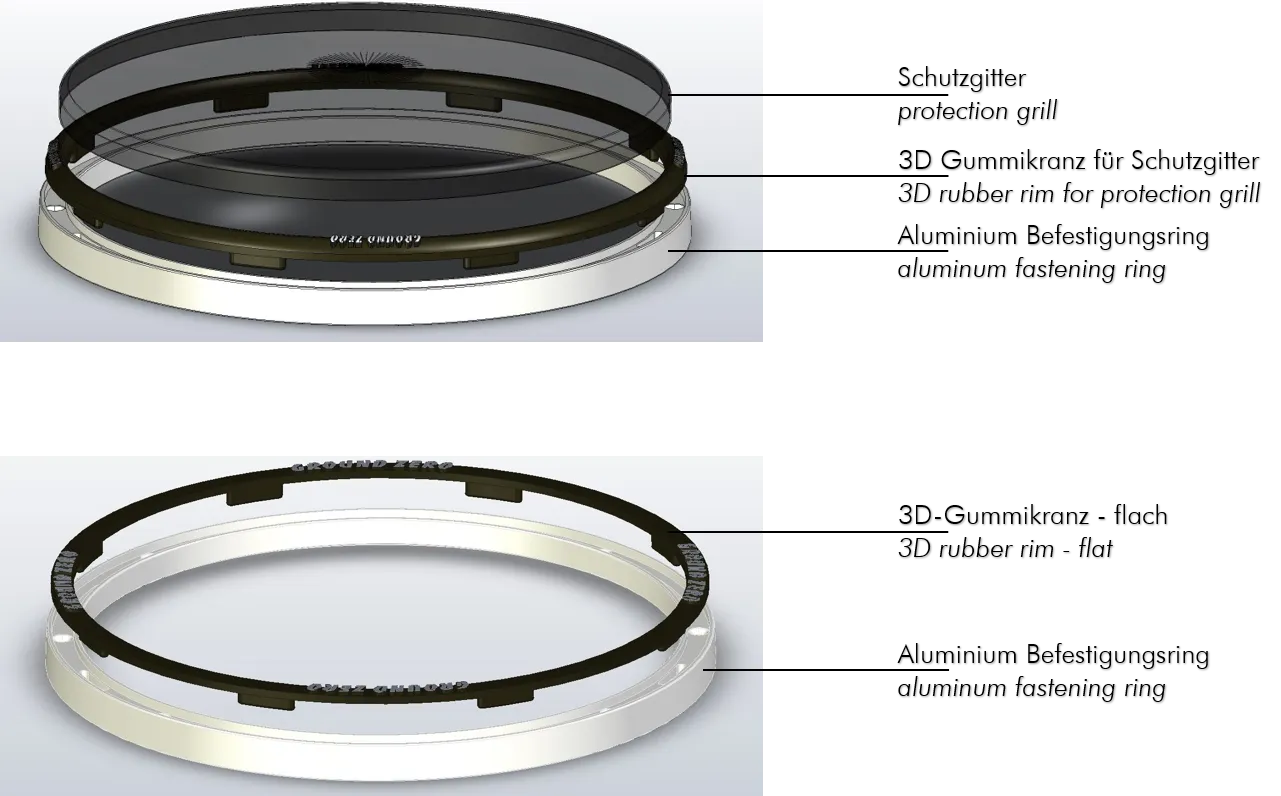 25 cm / 10″ universal protective grille for the woofer.