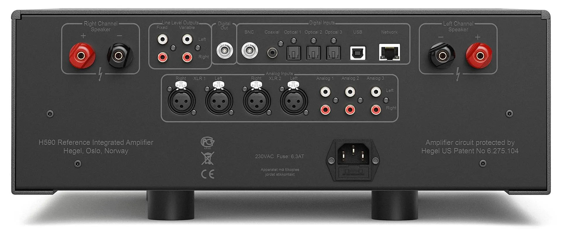 H590 is the name of Hegel's high-end integrated amplifier. The H590 includes user-friendly services such as Apple AirPlay, while also supporting ultra-high-quality formats such as DSD.