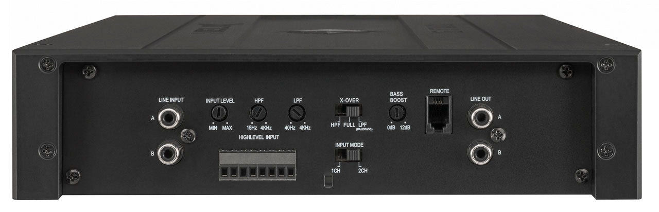 | Additional features | Active, adjustable crossover, bass boost, input mode switch, high level input with automatic turn on function and Advanced Diagnostics Error Protection (ADEP), Start-Stop capability, remote control for volume adjustment |