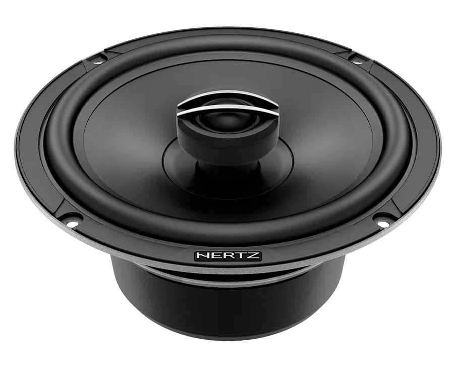 The CPX 165 car audio coaxial provides the thrill of listening to the Hertz sound even when the vehicle does not allow the installation of a two-way kit. The Tetolon dome tweeter and Neodymium magnet are provided with off-axis dispersion features and exceptional frequency extension for a detailed, airy sound. Radial Venting System technology ensures unparalleled cooling of the coil thanks to the eight holes at the base of the engine that allow air exchange with the tweeter support . This acts as a rear camera , sized for low Fs, to ensure a natural mid range and allow a low frequency crossover point with the woofer. The pressed-paper cone and the butyl rubber suspension offer an extended low frequency response and an impressive punch . The Mille-inspired design basket features a dampened and protective rubber coated magnet. The grille, available as an option, is made of a durable high resistance ABS frame and metallic mesh protection.