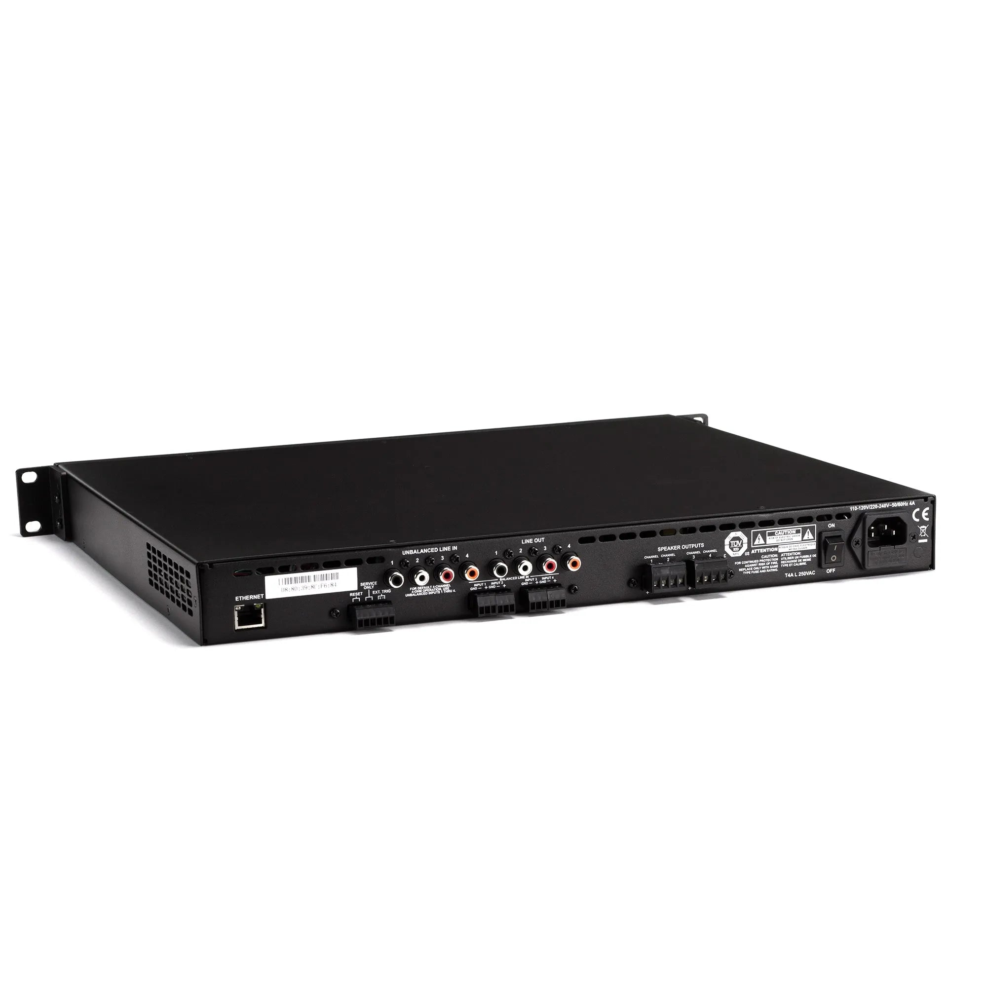 | Outputs | 4 x Phoenix Speaker Level (up to 12 AWG wire), 4 x RCA Line Level (Throughs) | |