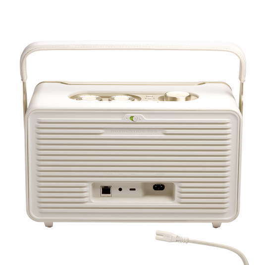 The JBL Authentics 300 is a portable wireless speaker that combines authentic JBL sound, classic retro style, and advanced modern features. With a built-in battery and convenient carrying handle, this speaker is always ready to go with you - no matter where you are.