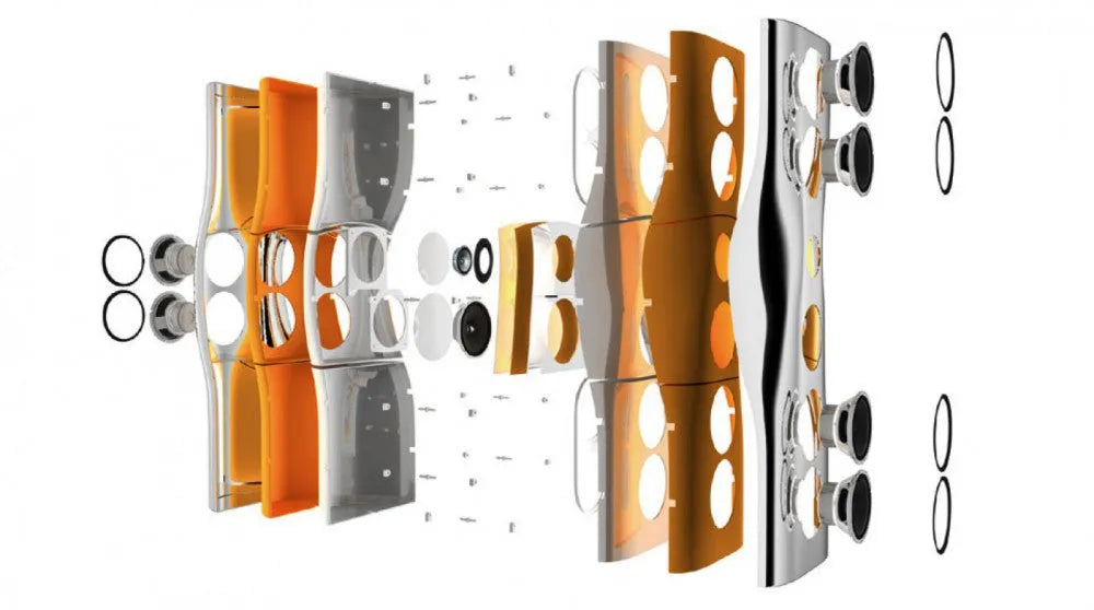 Not only is MUON iconic in its styling, its design and manufacture would not have been possible without highly sophisticated CAD/CAM software and technology. Guided by engineering and aesthetics, MUON is as much an extraordinary piece of sculpture as it is the ultimate sound provider. It's an exquisite example of British engineering and design at its very best.