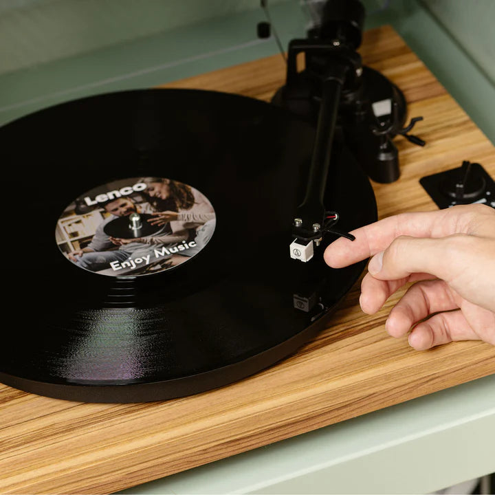 Lenco LS-500OK - a stylish turntable with two 30 W RMS speakers, ensuring true Hi-Fi quality. The device has an Audio-Technica AT-3600 cartridge, an aluminum platter, anti-skating function and an adjustable handle. Supports 33 and 45 RPM records, and Bluetooth® 4.2 allows you to stream music wirelessly. The classic walnut wood design with a removable dust cover fits perfectly into the interior.