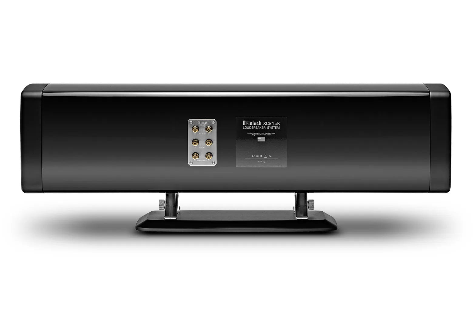 Like the XRT2.1K and XRT1.1K, the XCS1.5K bass cabinet is finished with 7 layers of high gloss piano black paint and has touches of brushed and black aluminum. The line array features hints of the classic McIntosh front panel with a black center section and silver trim. It is suspended in front of the bass cabinet via steel spiders that are inspired by modern skyscraper construction; they are capped with magnetic covers that mimic the look of McIntosh control knobs. All of these luxurious design features result in a cohesive family of front left, center, and right channel speakers in your home theater that will not only sound amazing but will also be the envy of your friends and guests.