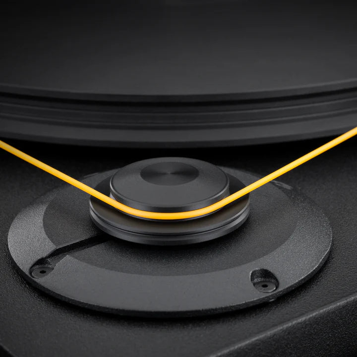 Our 300 RPM stepped-pulley AC motor provides excellent speed stability for pitch accuracy and rhythmic drive. The Delrin® pulley has two positions for 33 1/3 and 45 RPM speed selection. Motor vibrations are kept away from the platter and stylus by using advanced dampening materials that decouple the motor from the rest of the turntable.