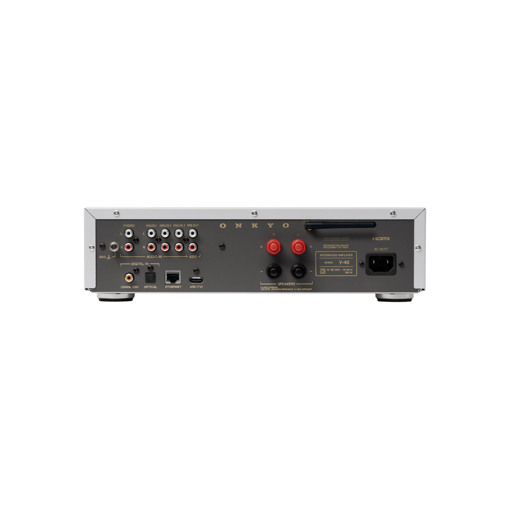 The Onkyo passion for sound refinement is manifested in the inspiring Muse Series. The Y-40 provides a powerful and detailed soundstage that conveys the artist's true intention without compromise. Designed with a full digital circuit and an Axign class D amplifier equipped with MOS FET output, the Y-40 delivers an impressive 125W (4 ohms) of accurate power - driving any size speaker with authority and bringing out its full potential.