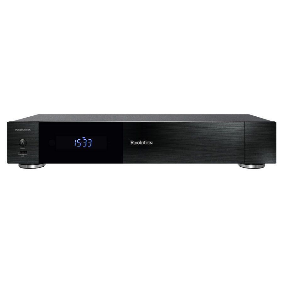 The R_volution PlayerOne supports the majority of digital audio and video formats, including the most modern 4K HDR standards such as Dolby Vision and HDR10+, almost all recent video file formats including 4K MKVs, BD and UHD ISO files with full and fast BD/UHD Menus, HEVC video codec with one billion colors (10-Bit color encoding), VP-9, 3D video standards with 3D subtitles, high resolution audio files such as DSD, FLAC, ALAC, and MQA, and features a wide solid chassis, dual HDMI output, 4K 60p, Auro3D, Dolby Atmos and DTS:X for the best possible home theater experience.