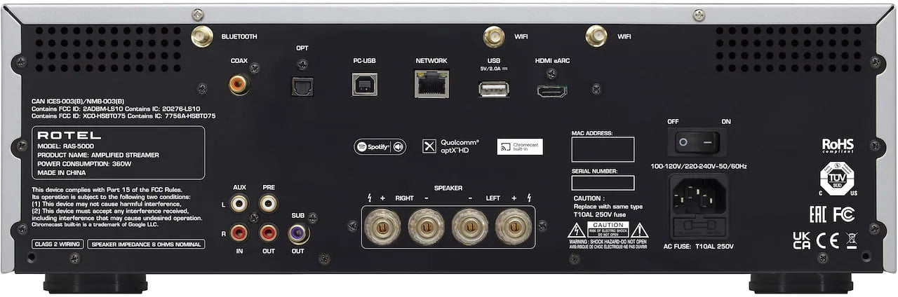 Simplicity and performance meet in the Rotel RAS-5000 designed to fit effortlessly into your lifestyle and elevate your entertainment experience. Stream your favorite music from Spotify Connect, Tidal Connect, Internet Radio, or any service available on your computer, tablet, or mobile device via Airplay 2, Google Cast, Roon, or aptX™ HD Bluetooth.