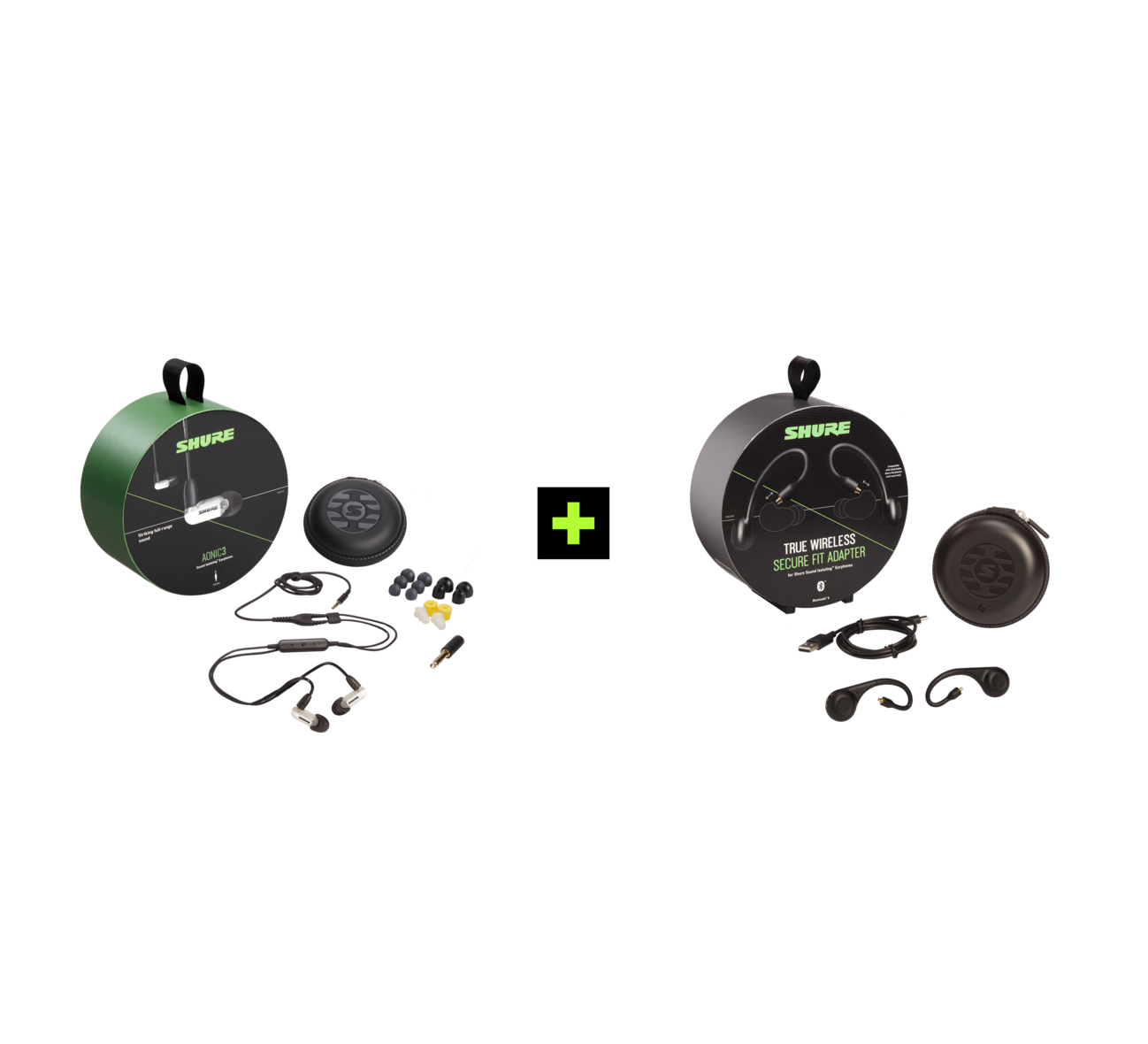 Shure AONIC 3 TRUE WIRELESS EARPHONE BUNDLE, Headphone and Wireless Headphone Adapter Bundle (Various Colors)