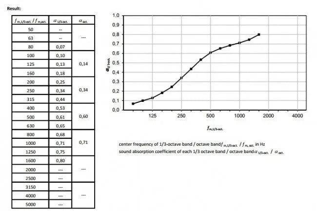 Sertifikuota medžiaga, tyrimai atlikti Akustik Forschung Dresden AFD laboratorijoje.
