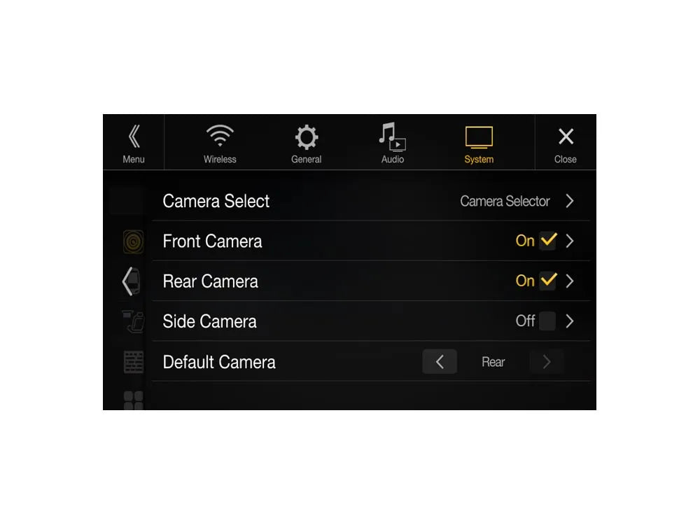 - Supports Alpine Multiview Cameras, you can switch between up to 4 different camera views - depending on the camera: Panorama-, Back-, Corner- and Top-view.
