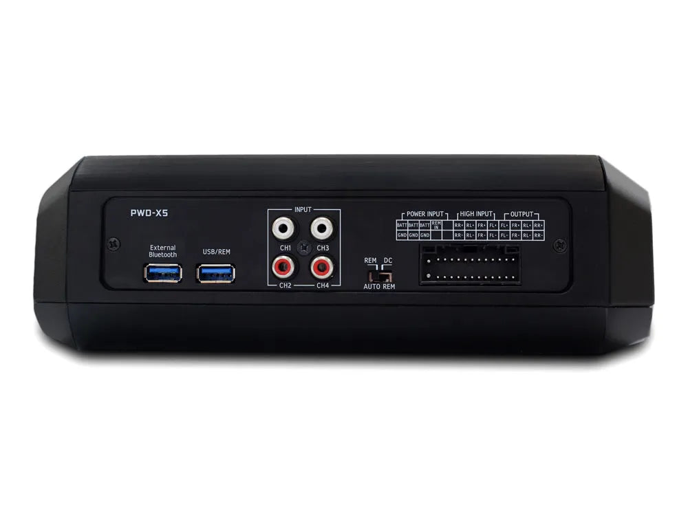 This very unique sound system upgrade product includes a high-performance Digital Sound Processor (DSP), 4-channel amplifier for your front and rear door speakers, as well as an ultra-flat active subwoofer. The small footprint allows the PWD-X5 to be easily installed inside the car’s cabin to enjoy a nice bass upgrade. Connect either OEM radios via high-power speaker level inputs or aftermarket radio via RCA inputs, and control the system through the wired remote control and the convenient smartphone app.