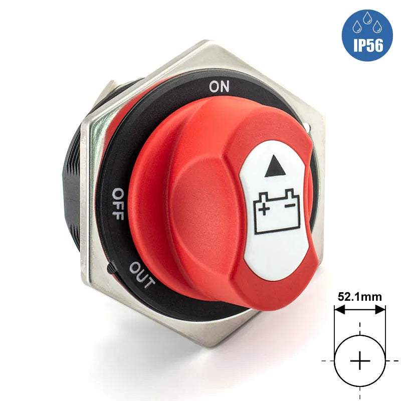 A high quality battery isolator switch for camper van, motor home, car or marine use. This battery isolator switch is designed to cut off the power to the battery quickly in the event of an emergency or to ensure no unexpected power draw from the battery during vehicle storage. RoHS compliant.