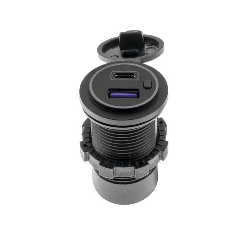 Dual USB charger (USB-A and USB-C) in compact design for 12/24 volts with 3250mA output current for installation in vehicles, boats and caravans.