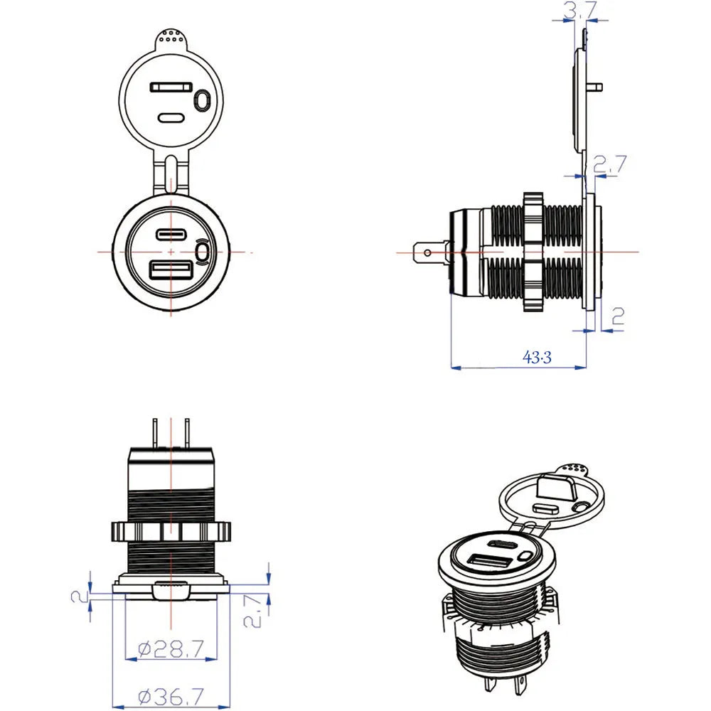 - Dual USB charger for 12/24 volts DC