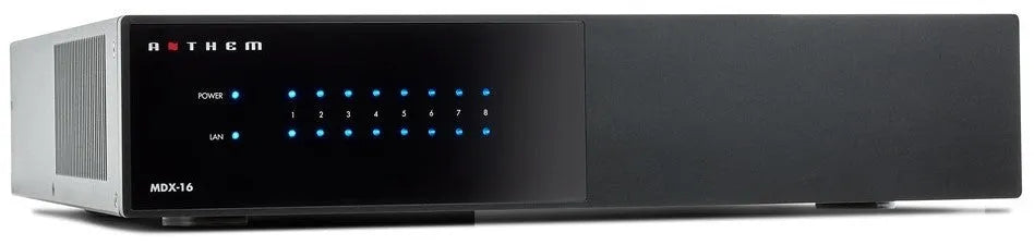 Anthem MDX 16 audio distribution for custom install is part of the MDX series, the first line of multi-zone amplifiers from Anthem. Featuring room correction, subwoofer outputs for every zone and ARC Genesis technology in each zone, this distribution system allows the same high tech home cinema audio in every room in the house.