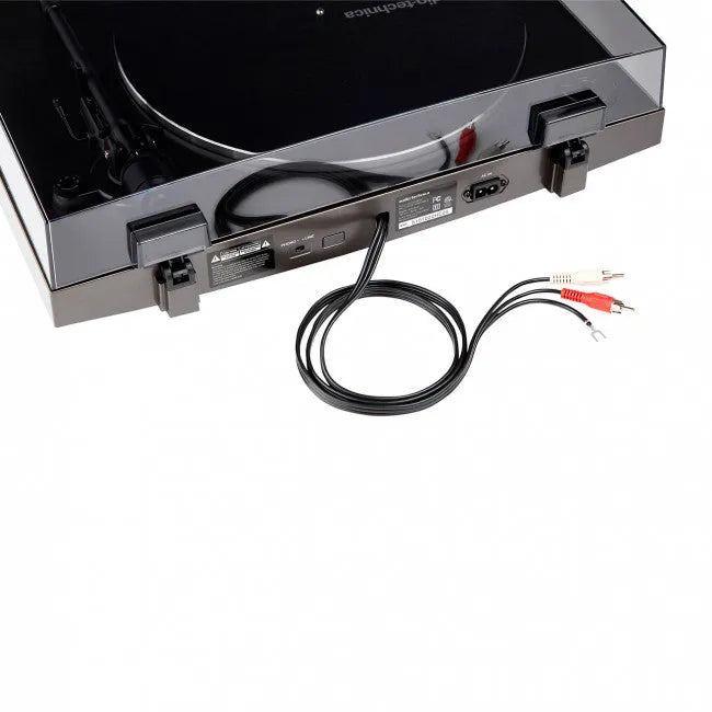 On the back of AT-LP2X is a PHONO/LINE switch; an attached dual-RCA output cable; and an AC input to connect the included power cable. Depending on your setup, switch the PHONO/LINE switch to LINE when you are using the AT-LP2X with a stereo preamp, or to PHONO—which will turn on the internal preamp—when you are connected directly to speakers.