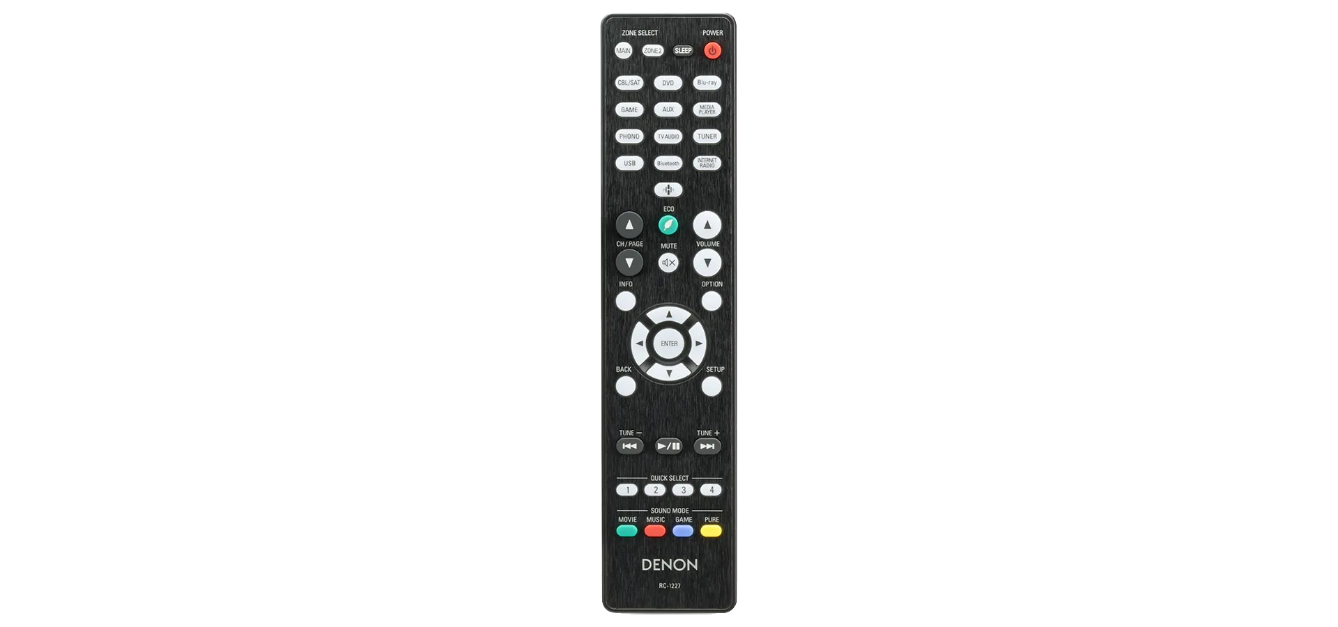 Denon AVR-X1500H priekinė valdymo panelė turi keturis greito pasirinkimo mygtukus, kurie įsimena tam tikrus garso nustatymus kiekvienam šaltiniui. Pasirinkite tarp TV garso, Blu-Ray, Media grotuvo bei daug daugiau. Naudokite reikiamus mygtukus, esančius priekinėje stiprintuvo panelėje ir valdykite stiprintuvą pagal savo poreikius žymiai sparčiau.