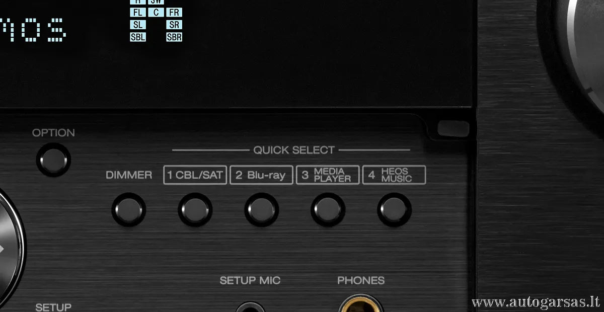 - Audyssey MultEQ XT32 automatinis kalibravimas ir kambario akustinė optimizacija naudojant LFC, Sub EQ, dinaminį tūrį ir dinaminį EQ
