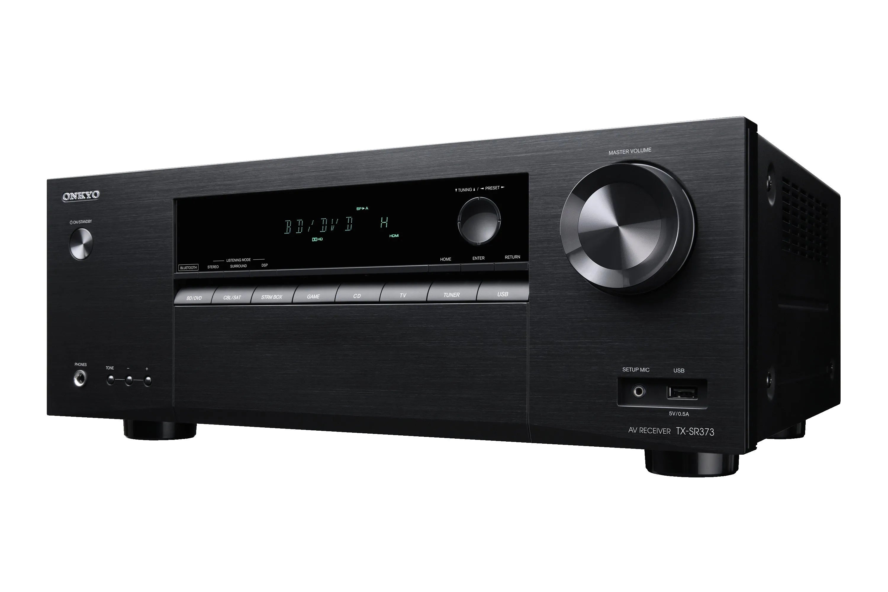 Pay for the features you need and none that you don’t with the TX-SR373, a future-ready AV hub that delivers powerful reproduction of popular multichannel soundtracks, including DTS-HD Master Audio™ and Dolby® TrueHD, with surround calibration included. Discrete high-current amps love music: use Bluetooth® wireless technology to stream any music playing on your phone, tablet, or laptop in moments. Connect all your gear (from network players to vintage consoles) to the TV via one HDMI® cable for a clutter-free install. Easy to use and with heaps of muscle, the TX-SR373 is an affordable way to get cinema sound at home.