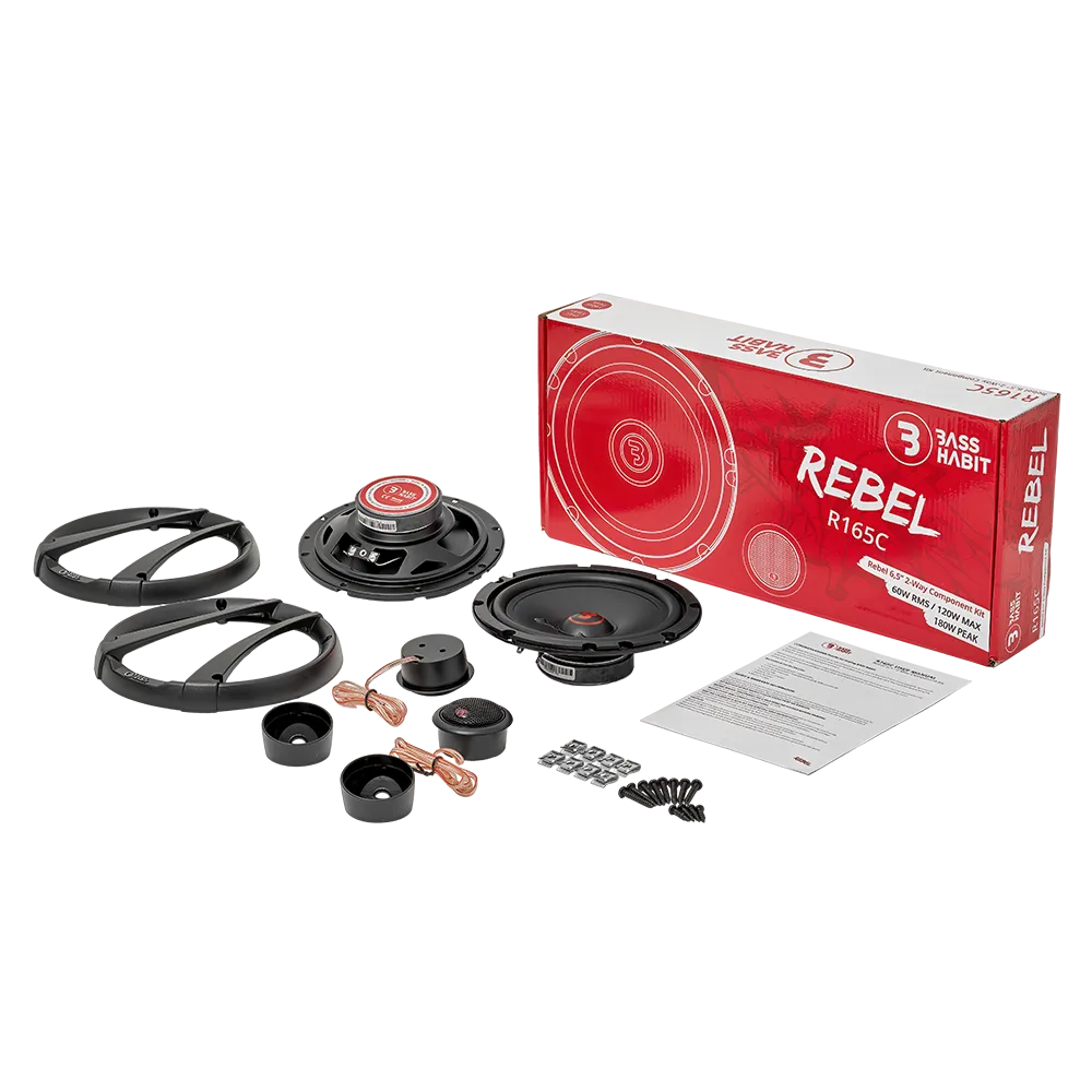Bass Habit Rebel R165C - šis 16,5 cm (6,5 colio) skersmens 2-jų juostų komponentinis komplektas apima ir vidutinių dažnių (midbass) garsiakalbius, ir aukštų dažnių (tweeterius), todėl užtikrina visapusišką garso patirtį. Nepaisant patrauklios kainos, šis rinkinys suteikia galingą, aiškų ir subalansuotą garsą.