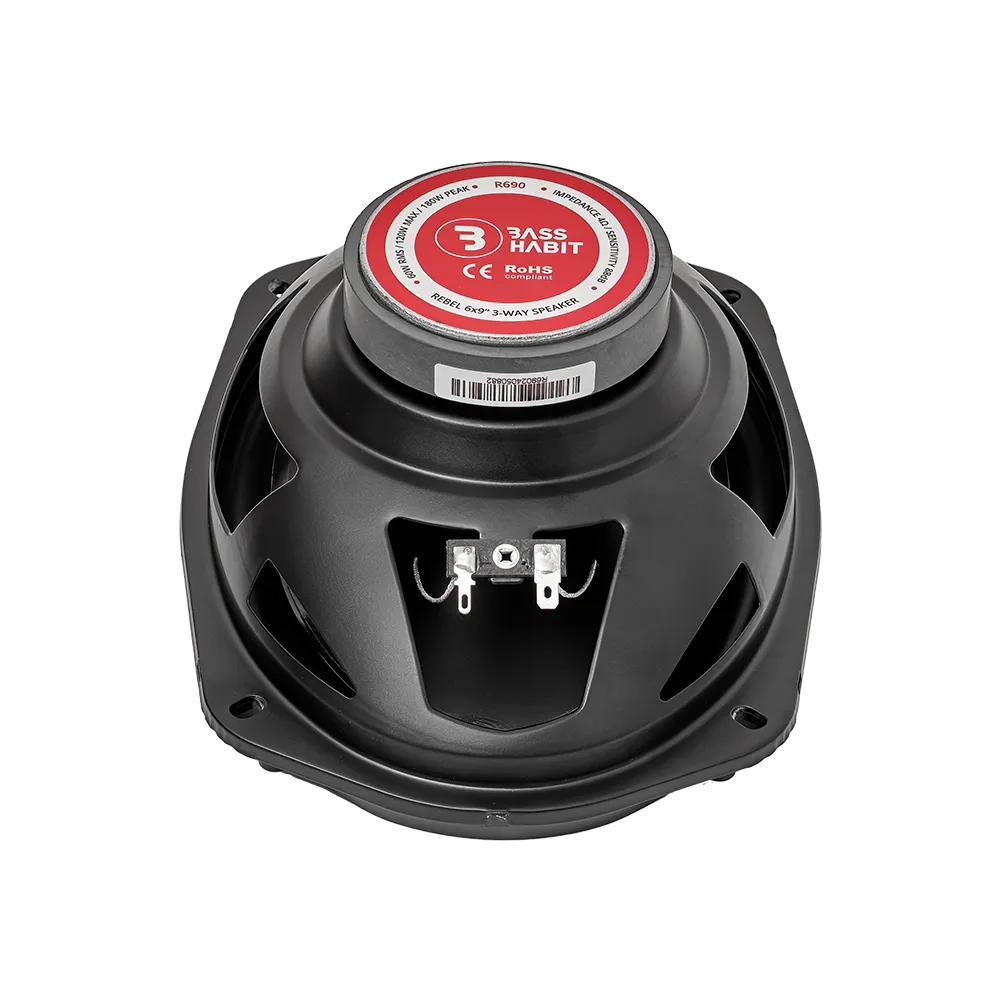 Bass Habit Rebel R690 - tai 6×9 colių dydžio 3-jų juostų koaksialiniai garsiakalbiai, kurie viename korpuse atkuria žemus, vidutinius ir aukštus dažnius. Puikiai tinka montuoti galinėje automobilio lentynoje ar individualiai suprojektuotoje kolonėlių plokštėje. Šis modelis yra puikus pasirinkimas tiems, kurie nori galingo ir kokybiško garso už prieinamą kainą.