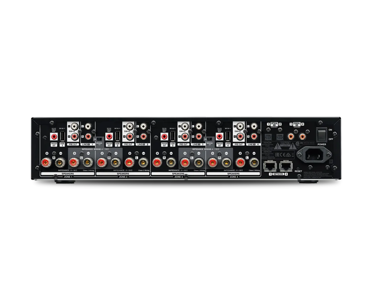 Kiekviena zona turi stereo išvestis pirminių stereo stiprintuvų porai, kurią galima sukonfigūruoti stereo arba mono išvesčiai. Perjungimo sistemos matrica turi 2 optines skaitmenines įvestis, 2 koaksialines skaitmenines įvestis ir 4 analogines stereo įvestis – bet kurią iš jų galima naudoti bet kuriai zonai, o kiekvienoje zonoje yra USB jungtis, į kurią galima įjungti išorinę USB laikmeną.