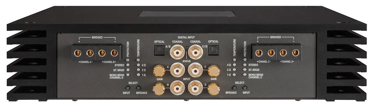 But that's not all – the MX4 PRO is also a prime example of bridging the gap between analog amplifier technology and the digital age. A previously unprecedented effort has been put into volume control of the digital signal inputs. In an absolute first in the car audio segment, in conjunction with the BRAX DSP, the signal level is controlled without reducing the digital resolution, only immediately before the output stages that drive the speakers, thus ensuring completely lossless analog signal quality. The BRAX DSP embeds the volume information in the digital SPDIF data stream and decodes it again in the MX4 PRO. This alone illustrates our engineers' striving for absolute perfection.