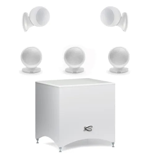 Miniature spheres of only 10 cm in diameter, the Alcyone 2 satellites benefit from the fundamental characteristics of each Cabasse speaker: acoustic linearity, dynamics, power handling and absolute spatial coherence. In its complete configuration, the 5.1 Alcyone 2 system consists of a Santorin 17M2 subwoofer, 5 satellites and a complete set of cables. Simplified installation, immediate pleasure.