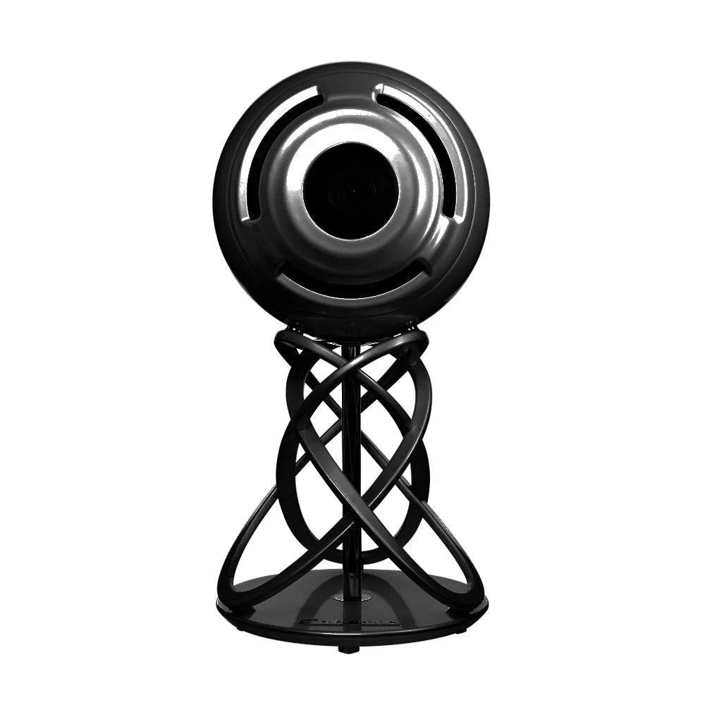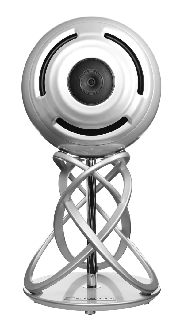 The 70cm spherical speaker, made from a sandwich of composite materials (and originally designed for the European space programme), is coupled with the die-cast aluminium helical support, which positions the centre of the speaker at a perfect listening height.