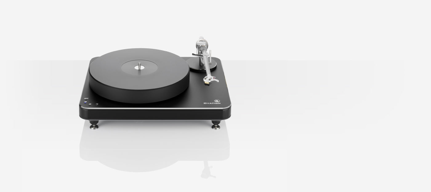 Clearaudio Ovation - aukštos klasės patefonas, išsiskiriantis minimalistiniu dizainu ir pažangiomis technologijomis. Jo tvirta konstrukcija iš aliuminio ir medienos, kartu su 100 000 metalinių rutuliukų, efektyviai slopina rezonansus. Įrengtas tylus DC variklis, optinė greičio kontrolė (OSC) ir keraminis magnetinis guolis (CMB) užtikrina puikų greičio stabilumą ir aukščiausią garso kokybę.