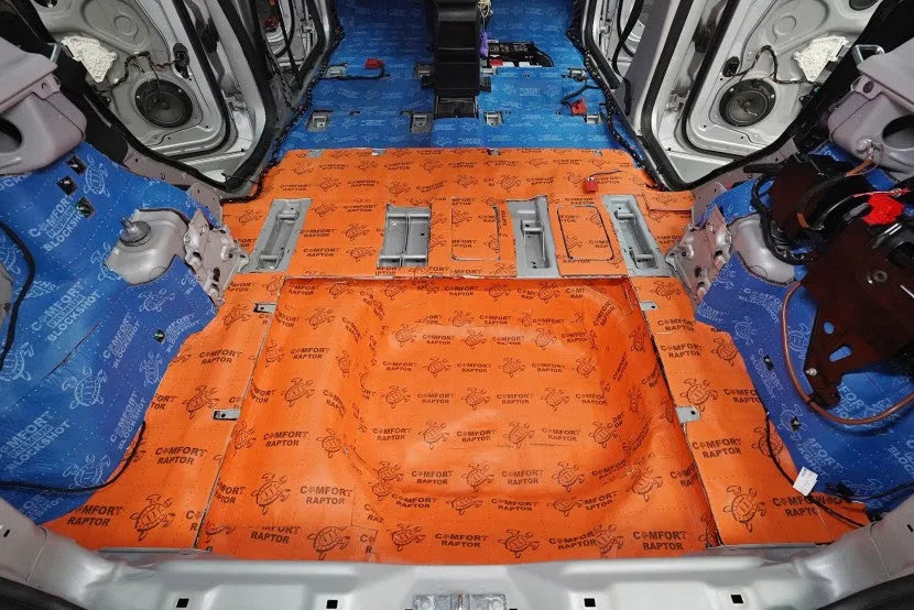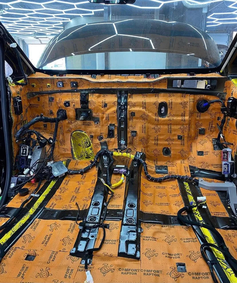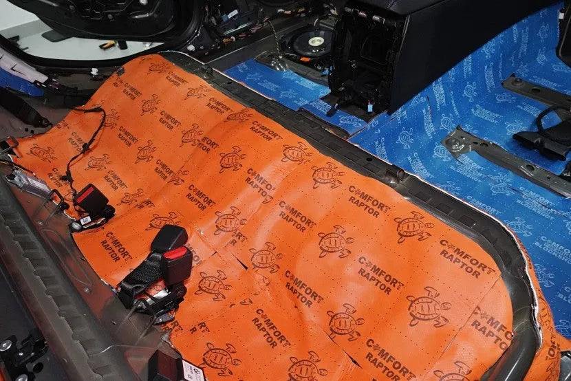 Ją sudaro 3 sluoksniai: membrana (2 mm) su didelio tankio akustine mastika, garsą sugerianti medžiaga (2 mm) ir naujas lipnus hermetikas, veikiantis nuo -50 iki +150C. Todėl RAPTOR galite montuoti ant bet kokių formų, nesibaimindami, kad jis atsilaisvins.