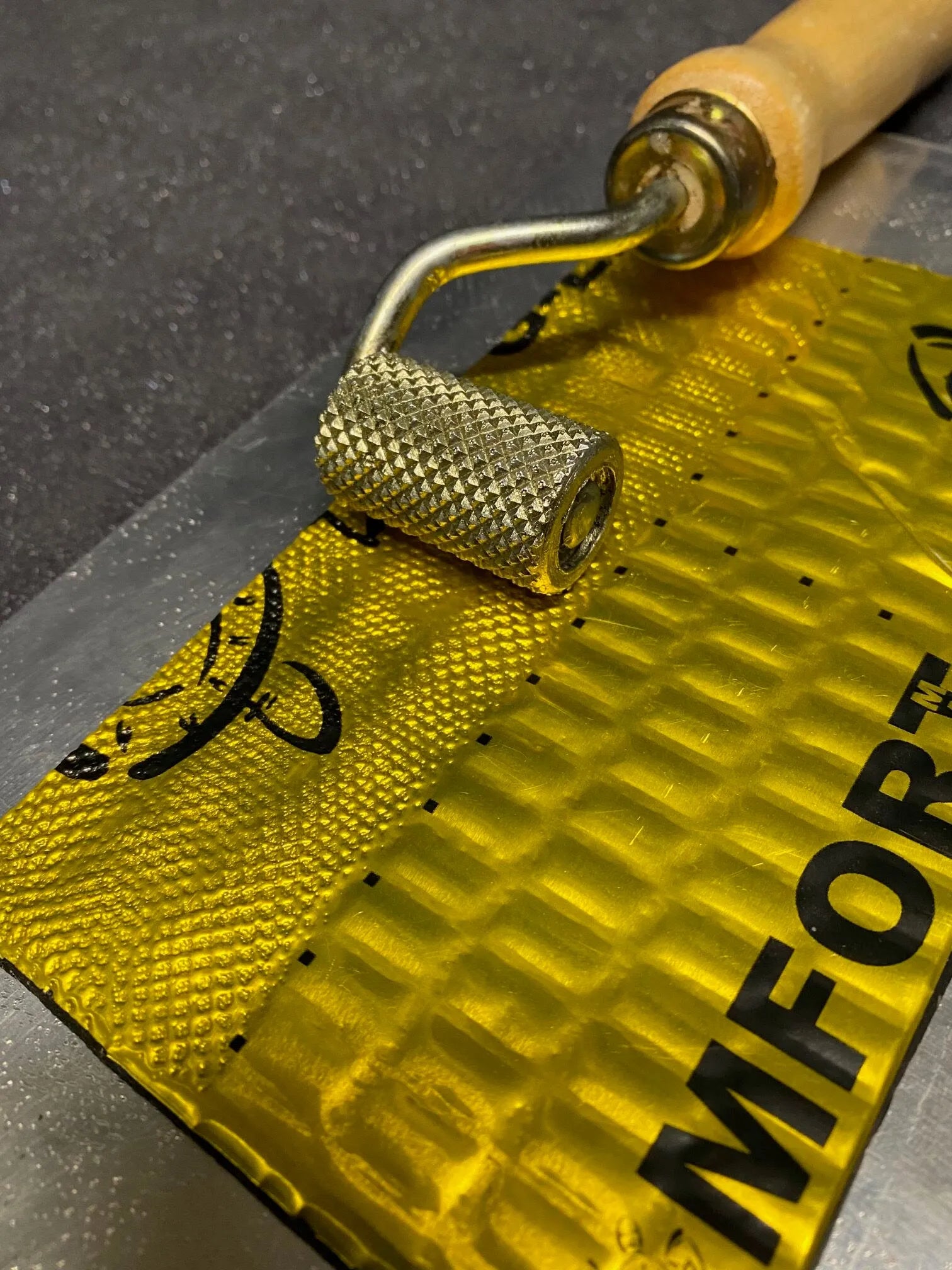 Kvadratai/deimantai ant slopinančių kilimėlių daromi siekiant nustatyti, ar kilimėlis susuktas, ar ne. Tai būtinas įrankis kiekvienam montuotojui.