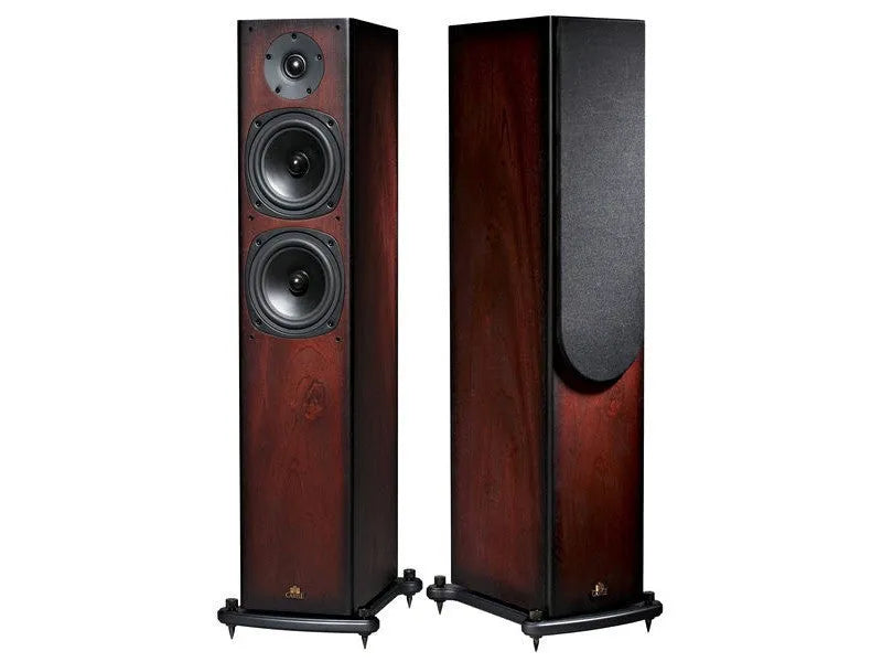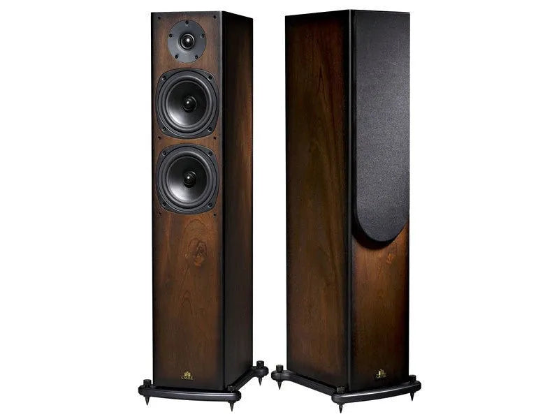 The Castle Knight 5 Speakers is the largest model in the Knight range, and packs a serious punch. Thanks to the larger 6" drivers and the much larger cabinet the K5 is big step up in scale over its slimline brothers. The K5 is perfect for large rooms with or without a subwoofer and looks stunning in its real wood veneer.