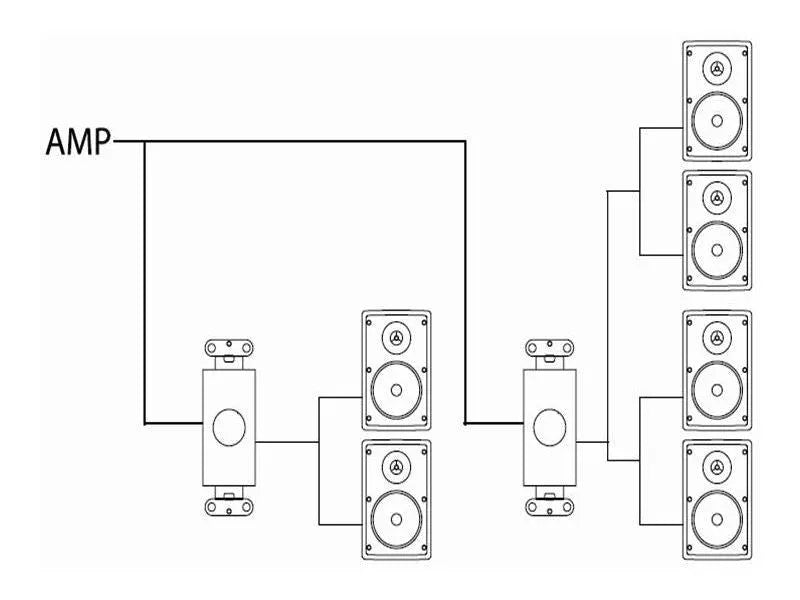 The AT-101 has a number of jumper settings for different impedance and for the number of connected speakers. It can handle up to 64 pairs of speakers when impedance matching instructions are followed*. It is available in white, ivory, almond and black. * To maintain an optimum volume level, Jamo does not recommend connecting more than 16 pairs on a single switch.