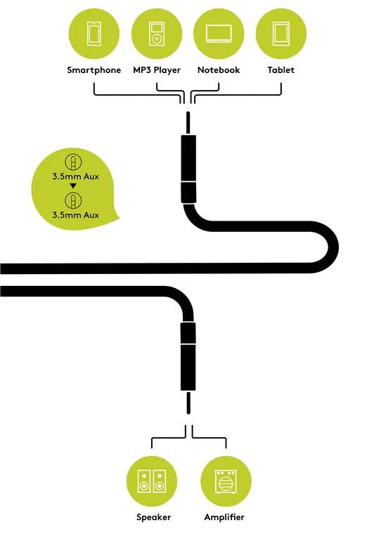 - The audio cable connects multimedia devices with a 3.5 mm jack socket such as smartphones and tablets to an output device, e.g. PC, amplifier or loudspeaker.