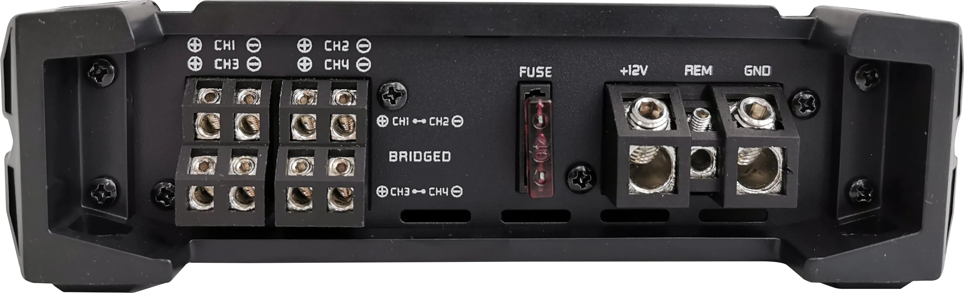 - Output power (RMS) @ 2 Ω: 4x 85 W (1% THD+N)