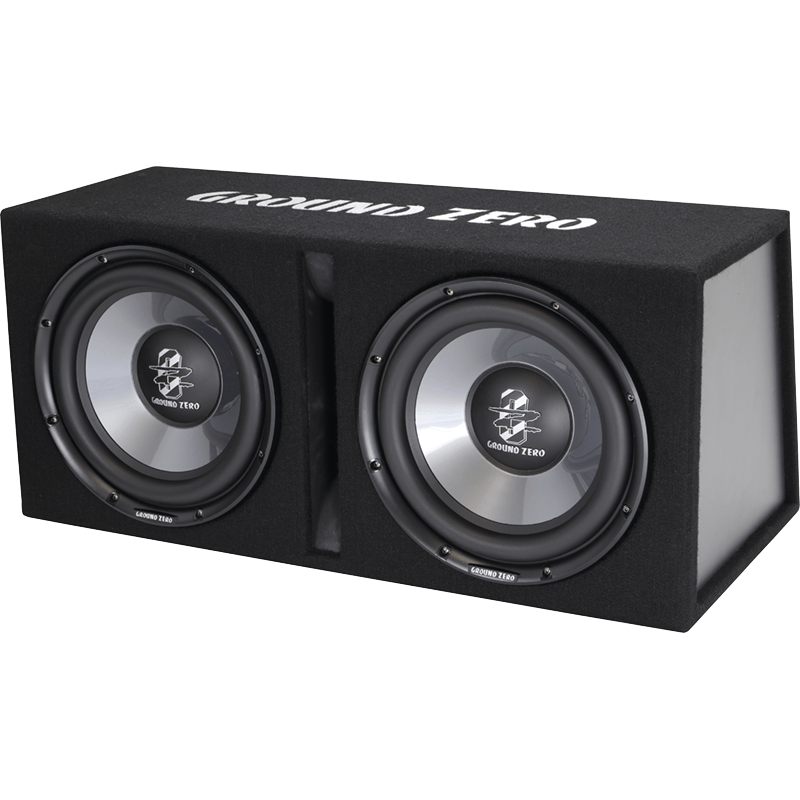 Automobilinė žemų dažnių garso kolonėlė su 2x 30 cm / 12″ žemų dažnių garsiakalbiais.