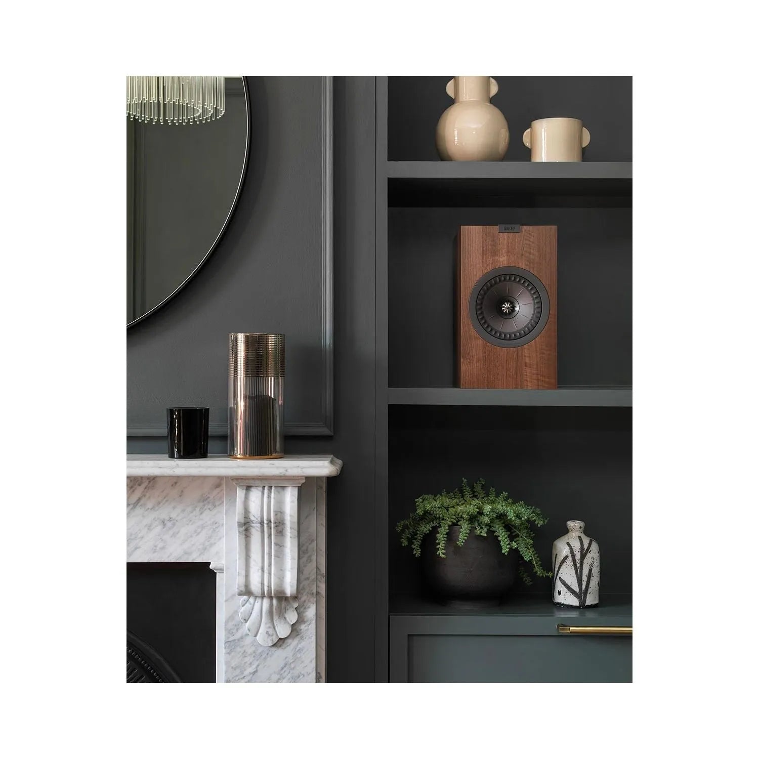 At the heart of the evolved Q Series is the Uni-Q driver array. KEF's signature innovation places the tweeter in the acoustic center of the midrange cone, bringing the acoustic ideal of a single point source closer than ever to realization. The result is a more detailed, more accurate three-dimensional sound image, which is dispersed more evenly throughout the room than is possible with a conventional speaker. Uni-Q's ultra-wide dispersion is further enhanced by KEF's 'tangerine' waveguide over the tweeter dome.
