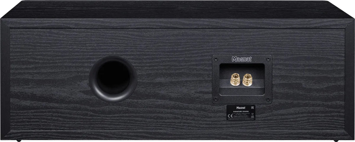 The sturdy MDF cabinet has a high-gloss or satin-finish baffle, depending on the version. If desired, the removable fabric covering allows a view of the worthwhile technology. At the rear, there is a solid connection terminal with gold-plated contacts. Airflex ports also prevent disturbing airflow noise in the Signature Center. Attention to detail: resonance-damping rubber feet are included in the delivery.