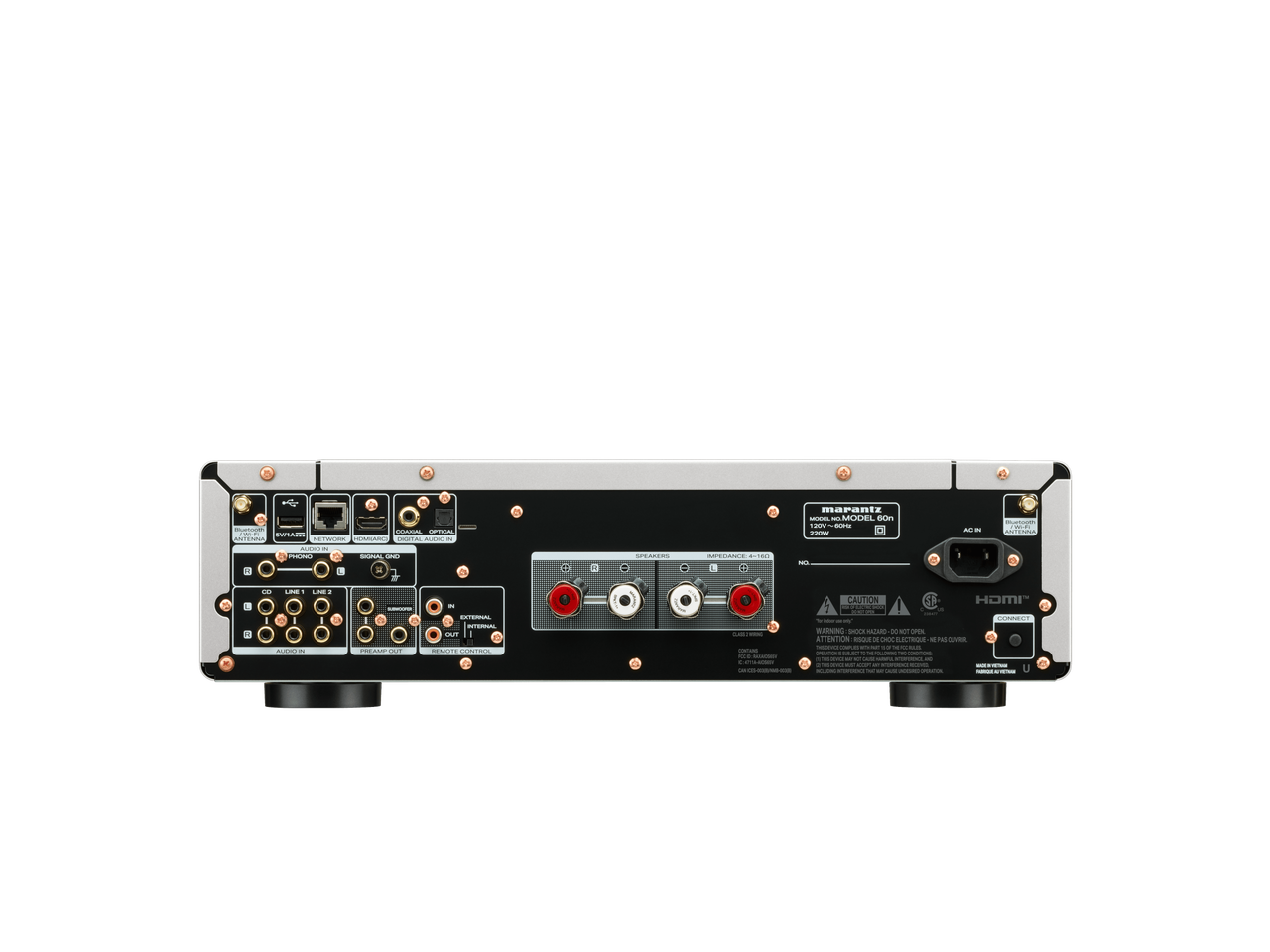 Marantz MODEL 60n - užtikrina išskirtinį Hi-Fi garsą, leidžiančią transliuoti aukštos raiškos garsą per „HEOS® Built-in“ funkciją, taip pat suteikia galimybę prijungti įvairius šaltinius, tokius kaip CD grotuvą ar patefoną. Su Marantz MODEL 60n galėsite išplėsti savo Hi-Fi sistemą prijungdami pasirinktas kolonėles ar papildomą žemų dažnių garsiakalbį, siekdami dar gilesnio ir kokybiškesnio garso.